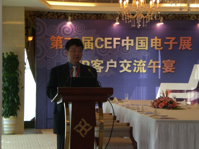 為答謝廣大電子廠商對中國電子展的長期支持,增進廠商了解和互信,中電會展于11月13日中午在永達大廈舉行交流午宴,邀請了包括美國福祿克、固緯電子、米尼帕電子、深圳帝光、武漢力源、威世、Analog Devices,中科泛華在內(nèi)上百家企業(yè)的中高層領(lǐng)導(dǎo),并邀請了高質(zhì)量的買家客戶前來參加,其中包括富士康科技、日立顯示、LG中國采購中心等;深圳市中電網(wǎng)絡(luò)技術(shù)有限公司CEO 劉杰博士也受邀參加并發(fā)表演講,同來賓分享了對電子行業(yè)的未來趨勢發(fā)展的認識和看法。