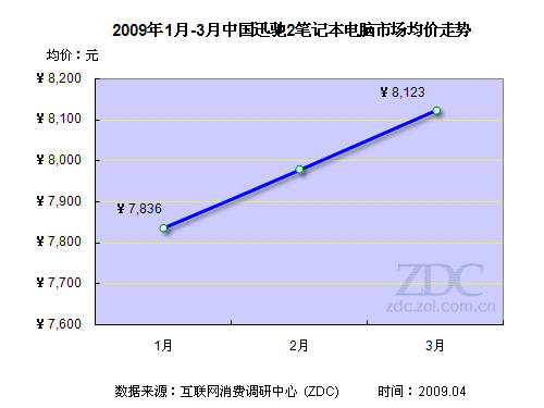 迅馳2筆記本的市場(chǎng)均價(jià)呈現(xiàn)走高的態(tài)勢(shì),從1月7836元上漲至3月8123元。