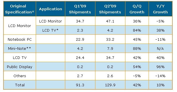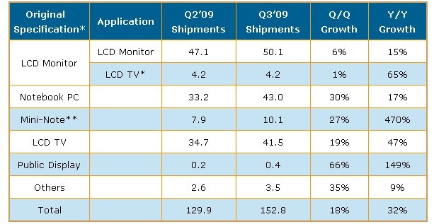 ** 上表中Notebook PC面板出貨包括10.x”尺寸應(yīng)用于mini-note (也稱作netbook) PC的部分.