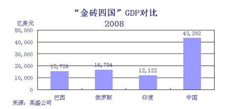 圖3:2008年金磚四國(guó)GDP對(duì)比。數(shù)據(jù)來(lái)源:高盛