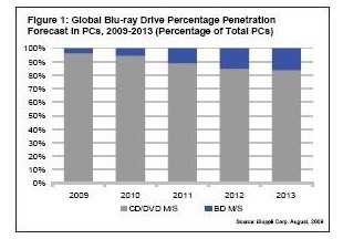 到2013年,當年出貨的PC中將僅有16.3%裝備BD,高于2009年時的3.6%。