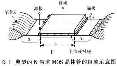 下面以N溝道MOS(metal-oxidesemiconductor)晶體管為例說(shuō)明等效電路與參數(shù)之間的關(guān)系。典型的N溝道MOS晶體管組成示意圖如圖1所示。