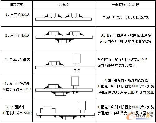 通常針對(duì)PCB不同的裝聯(lián)密度,推薦的組裝方式有以下幾種: