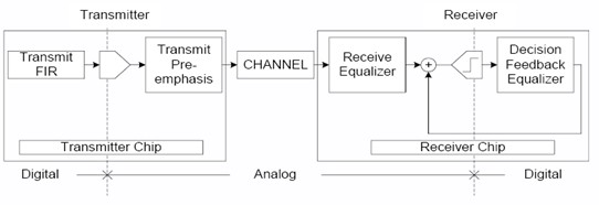 在高速serdes系統(tǒng)中, PCB的長距離傳輸線、連接器、過孔的阻抗不連續(xù)等因素對信號造成很大衰耗,比如6.25Gb/s的信號在FR4上走25英寸或者更遠之后的眼圖已經(jīng)無法張開,為了解決這種衰耗問題,往往有兩種方法,一種是在發(fā)射端使用預(yù)加重技術(shù),一種是在接收端使用均衡技術(shù)。