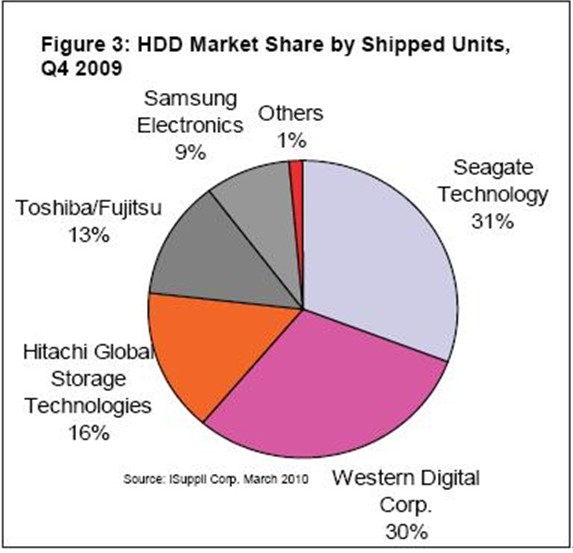 這些數(shù)據(jù)足以讓希捷2009年第四季度在硬盤出貨量和營業(yè)收入方面均繼續(xù)排名第一。