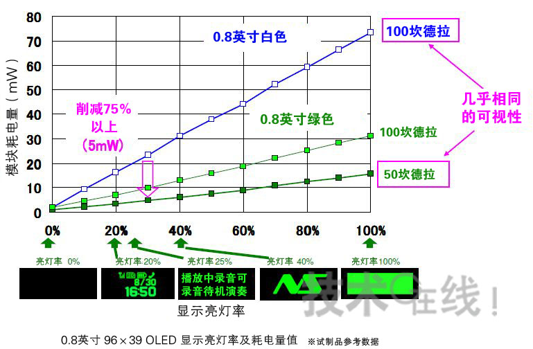 此次開發(fā)的有機EL面板的耗電量“與配備LED背照燈的液晶面板相當”。日本精機首先試制了0.8英寸的綠色面板,與該公司原來同尺寸面板相比,“可視性幾乎相同,耗電量削減了75%”(日本精機)。該公司計劃利用此次的有機EL面板低耗電技術,推動有機EL面板的普及。
