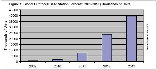 圖1所示為iSuppli公司對于2009-2013年femtocell基站出貨情況的預(yù)測。