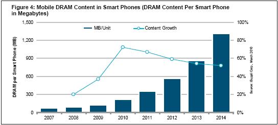 - 未來幾年智能手機(jī)使用的DRAM平均數(shù)量將增長九倍以上