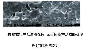 從電鏡圖像對比可見,風(fēng)華高科產(chǎn)品熔斷體層致密性較好,保險絲有較好的熔斷特性。電子元器件行業(yè)正在朝著高頻化、片式化、微型化、薄型化、低功耗、響應(yīng)速率快、高分辨率、高功率、多功能、模塊化和智能化等方向發(fā)展,正進(jìn)入以新型電子元器件為主體的新一代元器件時代。產(chǎn)品的安全性和綠色化也將成為影響電子元器件發(fā)展前途的重要因素。