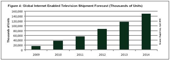 同樣,隨著品牌廠商努力延緩價格下跌速度和吸引消費者來更換其原有的老式平板電視,未來幾年對于IETV的推廣活動將會增強。iSuppli公司預測,2014年IETV市場將從2009年的1470萬臺增長到1.49億臺,復合年度增長率為58.9%。