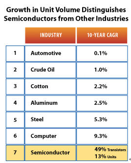 半導(dǎo)體業(yè)在數(shù)量上的增長與其它工業(yè)不同