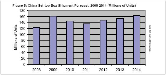 據(jù)iSuppli公司,2009年中國(guó)機(jī)頂盒(STB)出貨量(內(nèi)銷加外銷)大幅增長(zhǎng),主要受益于國(guó)內(nèi)衛(wèi)星直播星市場(chǎng)的爆炸性增長(zhǎng)。