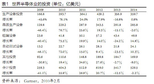 近期半導(dǎo)體業(yè)的迅猛增長,推動了半導(dǎo)體生產(chǎn)設(shè)備市場的快速復(fù)蘇,存儲器、代工業(yè)的發(fā)展以及進(jìn)一步走向微細(xì)化先進(jìn)技術(shù)的要求,則是主要的拉動力量。在各項生產(chǎn)設(shè)備中晶圓生產(chǎn)線(wafer fab)設(shè)備最為重要,增長也最快,2010年將竄升76.7%,達(dá)229億美元,獨占半導(dǎo)體生產(chǎn)設(shè)備的78%,整個半導(dǎo)體業(yè)投資的近57%。組裝設(shè)備增長75.5%,達(dá)41.8億美元,自動測試設(shè)備增長72%,達(dá)22.7億美元。其他有關(guān)投資增長19.4%,達(dá)110.6億美元,整個半導(dǎo)體業(yè)投資共增長55.9%,達(dá)到404.3億美元(表l)。