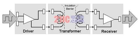 感應(yīng)隔離技術(shù)使用了一對(duì)通過(guò)一個(gè)絕緣層分離的線圈。該絕緣層防止任何物理信號(hào)的傳輸。信號(hào)可以通過(guò)改變流經(jīng)其中一個(gè)線圈的電流進(jìn)行傳輸,因?yàn)檫@樣會(huì)使跨過(guò)該絕緣層在第二個(gè)線圈中產(chǎn)生類(lèi)似的感應(yīng)電流。感應(yīng)隔離技術(shù)可以提供與電容技術(shù)相似的高速傳輸。但是由于感應(yīng)耦合涉及到用于數(shù)據(jù)傳輸?shù)拇艌?chǎng)的使用,因此它易受到外部磁場(chǎng)的干擾。