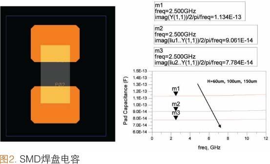 雖然01005SMD電容已面市一段時(shí)間,但是因?yàn)樵r(jià)格和組裝成本較高,并沒有成為RFSiP的普遍選擇。我們對(duì)帶有焊盤分布和互連線的0201SMD電容進(jìn)行了研究。