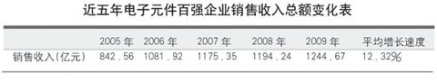 在本屆元件百強當中,有33家企業(yè)2009年的銷售收入超過10億元,比上屆增加3家;有6家企業(yè)超過50億元,與上屆持平。