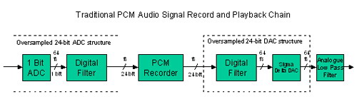 DSD的關鍵優(yōu)勢是理論上更簡單的信號鏈。位流直接記錄到光盤介質上,這可消除實現(xiàn)昂貴的數(shù)字濾波器的必要性。不過,對于準備采用DSD的音樂業(yè)界來說,它們必須購買新的設備?,F(xiàn)有的混音臺、錄音控制臺和數(shù)字錄音機現(xiàn)在都不支持PCM。