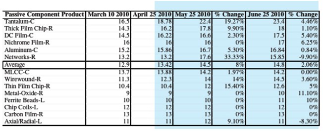 - 截止6月25日被動元件交貨期和上月相比再次提升2%
