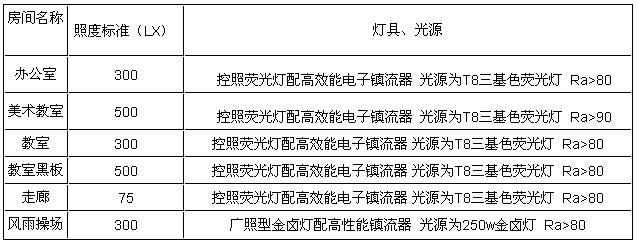 教學(xué)樓以教室、辦公室為主,以熒光燈為主要照明光源。
