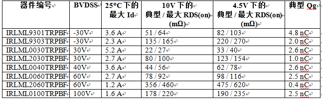 新款SOT-23 MOSFET 器件采用IR最新的中壓硅技術(shù),通過大幅降低90% RDS(on)顯著改善了電流處理能力,為客戶的特定應(yīng)用優(yōu)化了性能及價(jià)格。