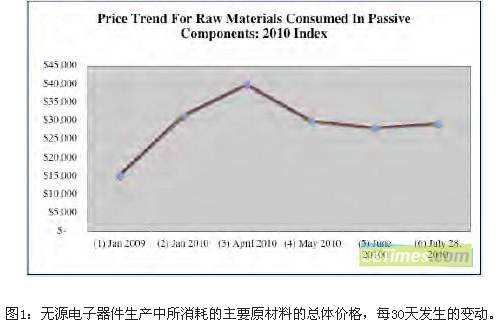 在7月份,無源電子器件在生產(chǎn)過程中所消耗原材料的帕曼指數(shù)(Paumanok index)增長了4%。這標(biāo)志著,在2010年4月急劇上漲之后的原材料價(jià)格整體下降的局面已經(jīng)臨近結(jié)束(圖1)。