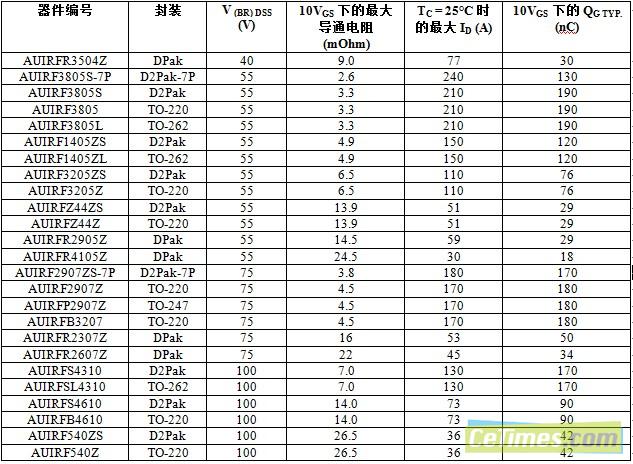 國(guó)際整流器公司 (International Rectifier,簡(jiǎn)稱IR) 日前宣布拓展了針對(duì)低導(dǎo)通電阻(RDS(on))應(yīng)用的汽車用功率 MOSFET 專用系列,包括車載電源及內(nèi)燃機(jī) (ICE) 、微型混合動(dòng)力和全混合動(dòng)力平臺(tái)上的重載應(yīng)用。