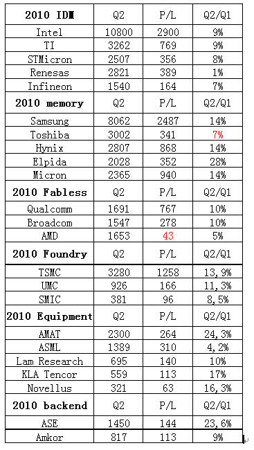 2010年Q2全球半導(dǎo)體業(yè)亮麗