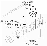 負(fù)載或電源的低壓側(cè)或高壓側(cè)都可進(jìn)行電流檢測。共模電壓是指分路(shunt)上的電壓(不是分路上的差分電壓),在低壓側(cè)檢測為零伏。低壓側(cè)檢測最簡單,可采用最基本的放大器電路。低壓側(cè)檢測的難點(diǎn)在于:低壓側(cè)檢測會影響系統(tǒng)的接地端,可能還需要增加更多的線路,而且這種作法通常不利于故障診斷。圖1中的高壓側(cè)分路放大器可檢測很高的電源電壓上極低的差分電壓(通常為100mV或更低),通常在車載應(yīng)用中為13.8V。不過,如果為無限制的(unconditioned)電池線路,那么會受瞬變影響:如果無意中將電池方向放錯(cuò)就會出現(xiàn)–13.5V的情況,如果出現(xiàn)負(fù)載突降或感應(yīng)反沖,那么最大瞬變可達(dá)72V。不妨設(shè)想,放大器通常采用5~12V的單電源供電(5V的電源供電日益常見),這就需要放大器的輸入引腳連接到共模電位,大大超過了放大器電源軌的限制。