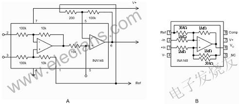圖1在高壓側(cè)電流檢測中,共模電壓是主要問題老式分路檢測電路基于差動放大器,即周圍帶四個(gè)電阻來設(shè)置增益并提供差動輸入的運(yùn)算放大器(operationamplifier)。這些電阻使運(yùn)算放大器能接受超過其電源軌的共模電壓。不過,這也會帶來下面一些負(fù)面問題:一是電路必須配置為衰減器,在隨后的運(yùn)算放大器級中恢復(fù)增益,如圖2A中的IC結(jié)構(gòu)圖所示,運(yùn)算放大器的增益會成倍增大第一個(gè)放大器的偏置和漂移量,從而降低整體性能。二是采用高共模電壓差動放大器要增加電阻網(wǎng)絡(luò),以使之在仍然只提供單位增益的同時(shí)能夠接受較高的共模電壓。高共模差動放大器帶來的影響在于:運(yùn)算放大器的噪聲增益與共模衰減成正比,如圖2B所示的差動放大器結(jié)構(gòu)采用了20:1的內(nèi)部共模衰減,此舉使放大器的偏置、漂移和噪聲都比運(yùn)算放大器本身擴(kuò)大了20倍。此外,較大的輸入電阻也會造成較高的噪聲。