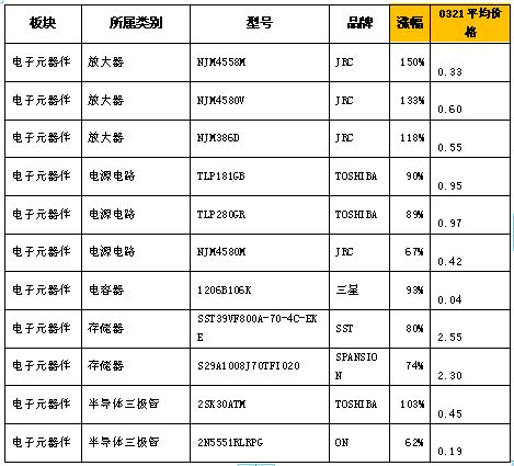 從我們采集到的數(shù)據(jù)來看,閃存開始呈現(xiàn)明顯上漲趨勢。3月15日,東芝閃存報價已經(jīng)上漲50%,而三星、現(xiàn)代也提價6%-26%;從通用元器件來說,日系的產(chǎn)品已經(jīng)全線上揚(yáng),而且是全面缺貨。下表為3月21日的電子元器件漲幅排行表,可以看出,漲幅最大的幾乎都是受災(zāi)企業(yè)的產(chǎn)品。
