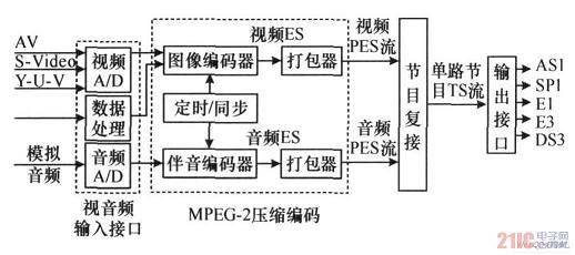 經(jīng)過信源編碼后的圖像信號(hào)送入多路復(fù)用器中與數(shù)字音頻信號(hào)進(jìn)行多路復(fù)用,然后送入信道編碼器。