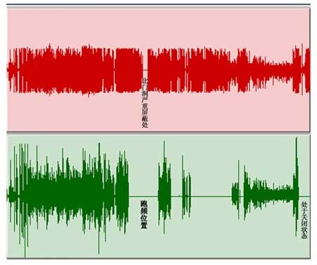 L牌UH2xx在由起點(diǎn)到終點(diǎn)的過(guò)程中,于247m處開(kāi)始跑頻,L牌LMxx在199m處開(kāi)始跑頻,繼續(xù)前進(jìn)越發(fā)嚴(yán)重,直至接收不到信號(hào)。