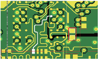 發(fā)射或者耦合是由某些幾何規(guī)則相違背造成的。例如,考慮電流回流的路徑,每一個(gè)信號(hào)都有一條信號(hào)軌跡預(yù)置好的路徑,但是在電源層和接地層經(jīng)常有回路出現(xiàn)。回路電流總是選擇電阻最小的路徑;同時(shí)在高頻條件下,選擇阻抗最低的路徑。這種新軟件可以確定哪條返回路徑是不連續(xù)的。例如,這個(gè)路徑有可能由于分離的平面而被中斷。如果回路在幾何位置上不能跟隨信號(hào)路徑,那么回路電流則會(huì)使用一條不同的路徑。依賴于回路電流周圍區(qū)域的大小,會(huì)出現(xiàn)一個(gè)天線輻射或接收干擾信號(hào),導(dǎo)致EMC符合性的失敗或者可能的設(shè)計(jì)故障。這個(gè)軟件工具識(shí)別電源供電層中這樣不連續(xù)的銅對(duì)高頻來說是否由一個(gè)或者多個(gè)電容器相連結(jié)(如圖1)。那些電容器會(huì)形成一條對(duì)回路電流有著低阻抗的路徑,從而避免不希望的回路。