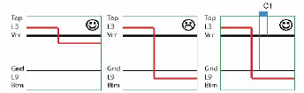 圖1由于電容距離信號(hào)太遠(yuǎn)以至于不能連接斷層而導(dǎo)致的EMC問題