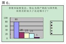 在本屆展會(huì)上,“數(shù)控機(jī)床與基礎(chǔ)制造裝備重大專項(xiàng)(04專項(xiàng))圖片展”吸引了眾多觀眾的目光。國家設(shè)置“04專項(xiàng)”,是為了逐步提高我國高檔數(shù)控機(jī)床與基礎(chǔ)制造裝備的自主開發(fā)能力,滿足國內(nèi)主要行業(yè)對制造裝的基本需求。在對“高檔數(shù)控機(jī)床與基礎(chǔ)制造裝備”重大專項(xiàng)的評價(jià)調(diào)查中,認(rèn)為“有很大作用”的達(dá)69.4%,“作用一般”的為26.9%,“沒起什么作用”的為3.8%(詳見圖3)。這表明,國家對數(shù)控機(jī)床行業(yè)的政策支持,得到了大多數(shù)行業(yè)人士的認(rèn)可。