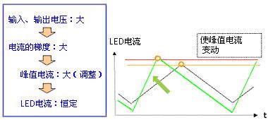 要解決這一問題,應(yīng)不用峰值電流來控制LED電流,而須用LED電流的平均值來控制(平均電流控制)。