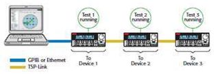 基于對(duì)SMU技術(shù)的理解,Mark A Cejer對(duì)競(jìng)爭(zhēng)者推出的SMU產(chǎn)品也作出了自己的評(píng)價(jià)。他表示,NI的產(chǎn)品大都基于PXI總線,這在功率上就會(huì)受到限制;另外將眾多的板卡放在一個(gè)機(jī)箱中,溫度引起的噪聲影響也是一個(gè)問題。與Agilent的產(chǎn)品相比,吉時(shí)利的SMU由于采用了專利的TSP技術(shù),因此可以將測(cè)試腳本程序上載到機(jī)器中,只需一個(gè)指令即可運(yùn)行整個(gè)程序,而Agilent的產(chǎn)品只能逐條讀取和執(zhí)行程序指令,所以吉時(shí)利的SMU可以實(shí)現(xiàn)更高的測(cè)試速度;同時(shí)通過TSP-Link虛擬背板技術(shù),可以靈活地實(shí)現(xiàn)多臺(tái)SMU的連接,在提高測(cè)試吞吐量的同時(shí)實(shí)現(xiàn)很高的測(cè)試效率。