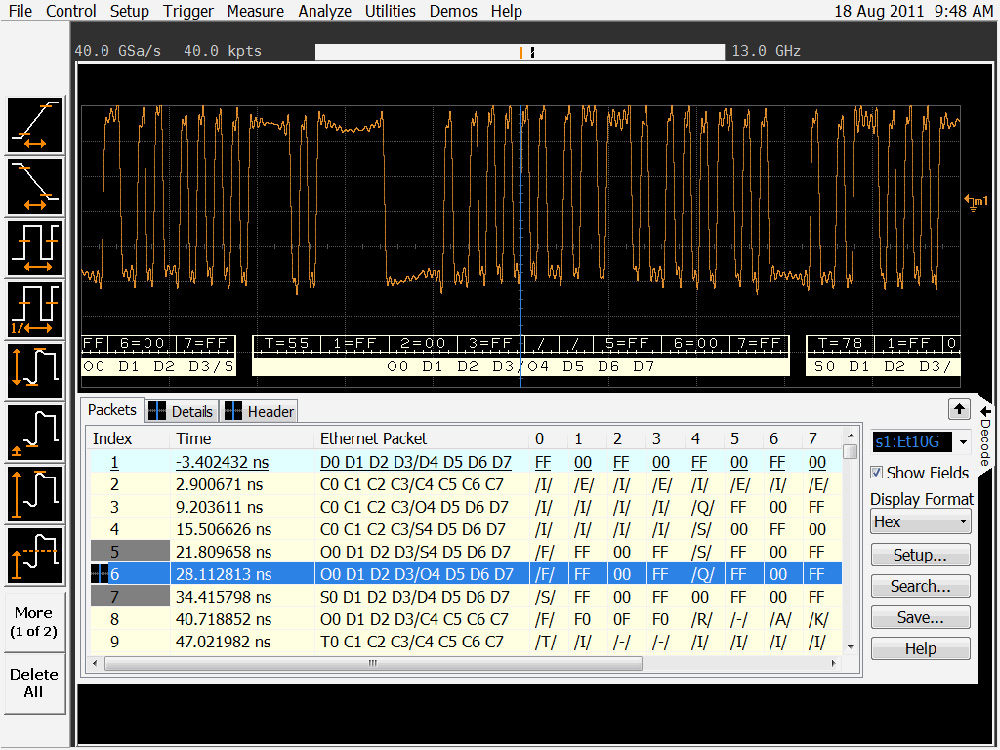 迄今為止,業(yè)界僅針對(duì) I2C、SPI、CAN 等總線或基于 8b/10b 的解碼方案提供以示波器為基礎(chǔ)的協(xié)議解決方案,而 64b/66b 開發(fā)人員只能對(duì)這一復(fù)雜設(shè)計(jì)進(jìn)行手動(dòng)解碼。Agilent N8815A 以太網(wǎng) 10Gbase-KR 解碼應(yīng)用軟件可以實(shí)時(shí)執(zhí)行解碼程序,使開發(fā)團(tuán)隊(duì)能夠更快地推出優(yōu)質(zhì)產(chǎn)品。