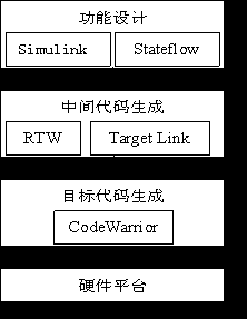 在進(jìn)行向標(biāo)準(zhǔn) C代碼的轉(zhuǎn)換的過程中,可以根據(jù)需要加入符合OSEK規(guī)范的嵌入式實(shí)時(shí)操作系統(tǒng)。在代碼生產(chǎn)階段使用的主要工具是CodeWarrior。通過使用CodeWarrior提供的編譯器、調(diào)試器等工具,完成從標(biāo)準(zhǔn)C代碼向目標(biāo)硬件平臺(tái)上的產(chǎn)品代碼的轉(zhuǎn)換工作。下圖表示了汽車電子產(chǎn)品的代碼生成過程。