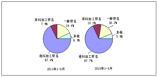 一般貿(mào)易出口增長較快。1-9月,一般貿(mào)易出口884億美元,同比增長29.9%,增速比行業(yè)平均水平高15.5個百分點,占行業(yè)比重(18.4%)比去年同期提高2.2個百分點。9月份,一般貿(mào)易出口增長18.4%,高于全行業(yè)平均水平11.0個百分點。