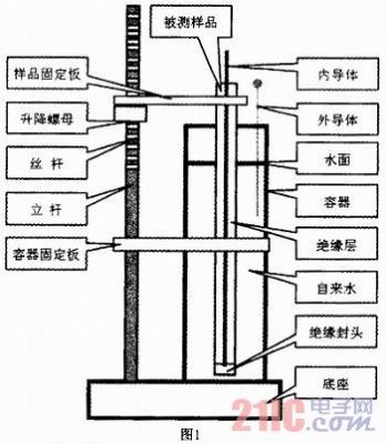 將被測(cè)樣品下端用絕緣物質(zhì)封住端口,放入盛有自來水的容器,利用樣品固定板將樣品固定。由于水是導(dǎo)電液體,流動(dòng)性好,能夠均勻地包裹在絕緣層外面,在水中插入一根導(dǎo)線(裸銅線),相當(dāng)于在絕緣層外增加一個(gè)電極。將電容測(cè)試儀的測(cè)量夾,分別連接到內(nèi)外兩個(gè)導(dǎo)體,即可測(cè)量外導(dǎo)體和內(nèi)導(dǎo)體之間的電容值。
