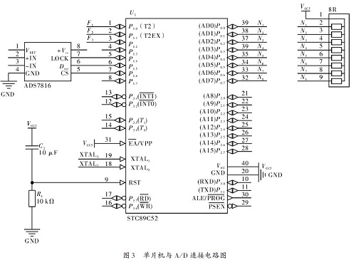 單片機(jī)與A/D連接電路圖如圖3所示。