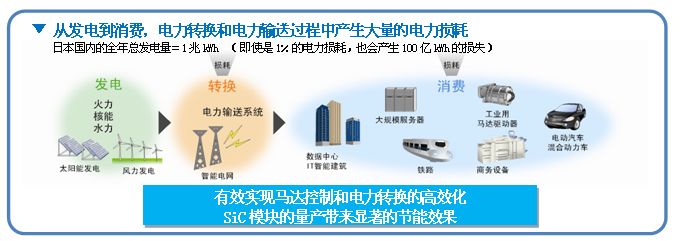 此產(chǎn)品安裝在工業(yè)設(shè)備和太陽能電池等中負(fù)責(zé)電力轉(zhuǎn)換的變頻器、轉(zhuǎn)換器上,與普通的Si(硅)材質(zhì)的IGBT模塊相比,具備以下優(yōu)勢,有效解決了世界能源和資源等地球環(huán)境問題。