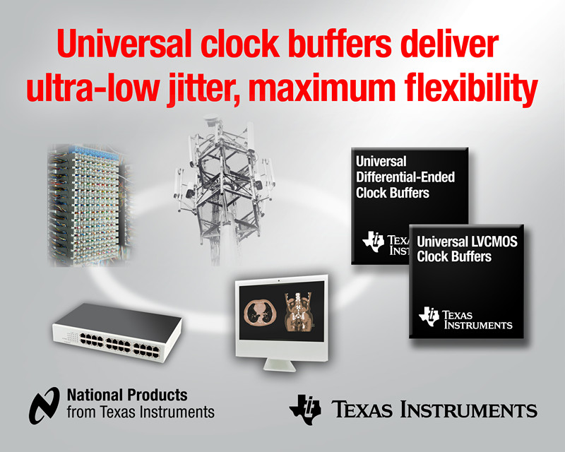 日前,德州儀器 (TI) 宣布推出 2 款最新通用時鐘緩沖器系列,進(jìn)一步壯大其高性能時鐘緩沖器產(chǎn)品陣營。CDCLVC1310 LVCMOS 時鐘緩沖器可在晶振模式下實現(xiàn) –169 dBc/Hz 的業(yè)界領(lǐng)先相位噪聲底限。LMK00101/05 支持高靈活輸出電壓電平配置,可對該系列實現(xiàn)有力補(bǔ)充。LMK00301/04/06/08 差分端系列支持 51 飛秒 (fs) 超低附加抖動。