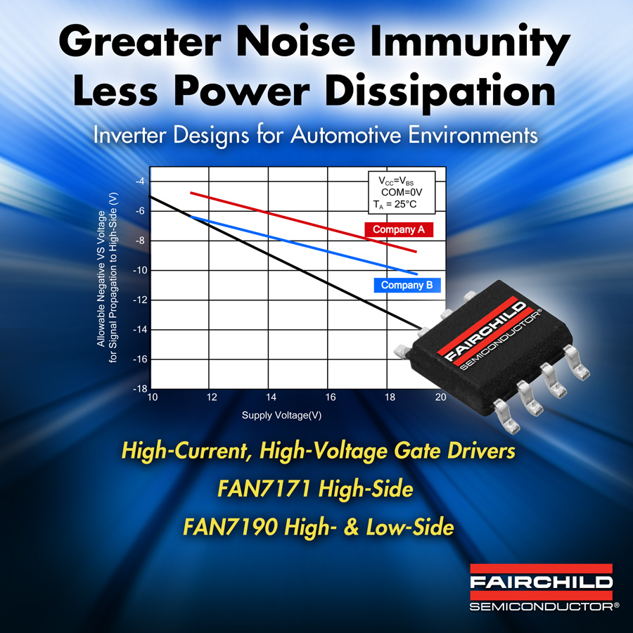 FAN7171和FAN7190 HVIC器件提供了集成式逆變器解決方案,在嚴(yán)苛的汽車應(yīng)用中提供更高效率、更大驅(qū)動(dòng)電流和更高穩(wěn)健性。