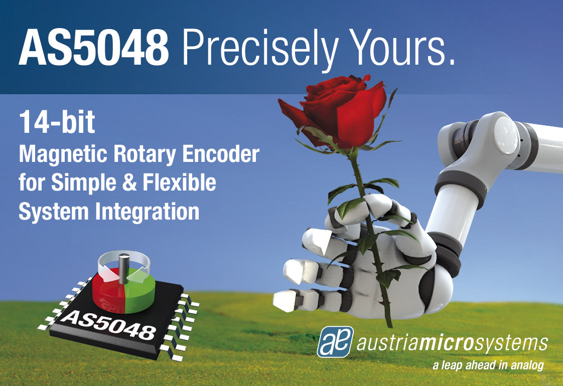 全球領先的高性能模擬IC設計者及制造商奧地利微電子公司日前宣布推出一款14位的磁性編碼器芯片AS5048,其全新特性可為基于單片機的應用帶來比以往更方便的精確、可靠的角度測量。