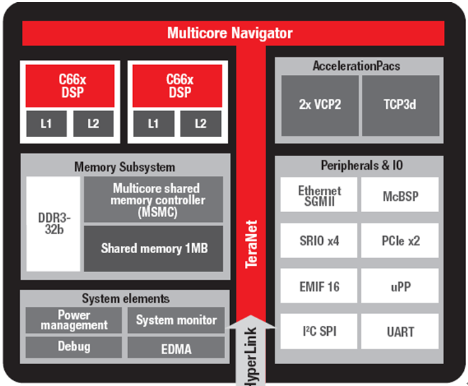 支持與其它 KeyStone 架構(gòu)器件高達(dá) 50GBaud 互連的 HyperLink 可實現(xiàn)資源擴(kuò)展;