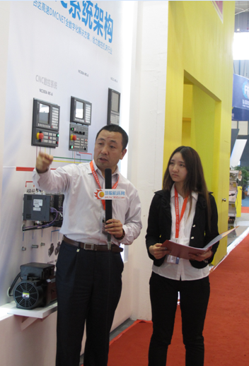 中達(dá)電通伺服&數(shù)控產(chǎn)品開發(fā)處經(jīng)理李文建向媒體介紹臺達(dá)展臺