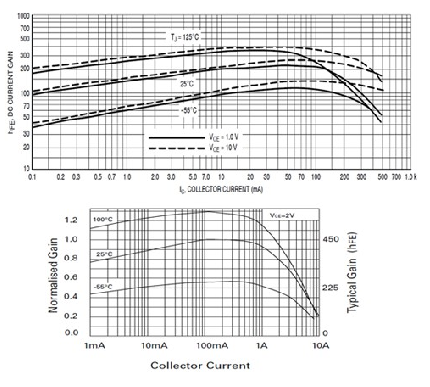 事實上,晶體管將與其組件進(jìn)行配對(MMBT3904用于3906,MMBT2907用于2222)。這兩個不同的配對僅用于比較。這些器件還具有更高的電流和更高的hfe, 如FMMT618/718對,其在6A電流時具有100 的hfe(請參見圖2)。與集成驅(qū)動器不同,分立器件是更低成本的解決方案,且有更高的散熱和電流性能。