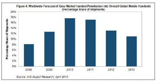 - 2010和2011年,手機(jī)灰市占總體手機(jī)出貨量的17-18%